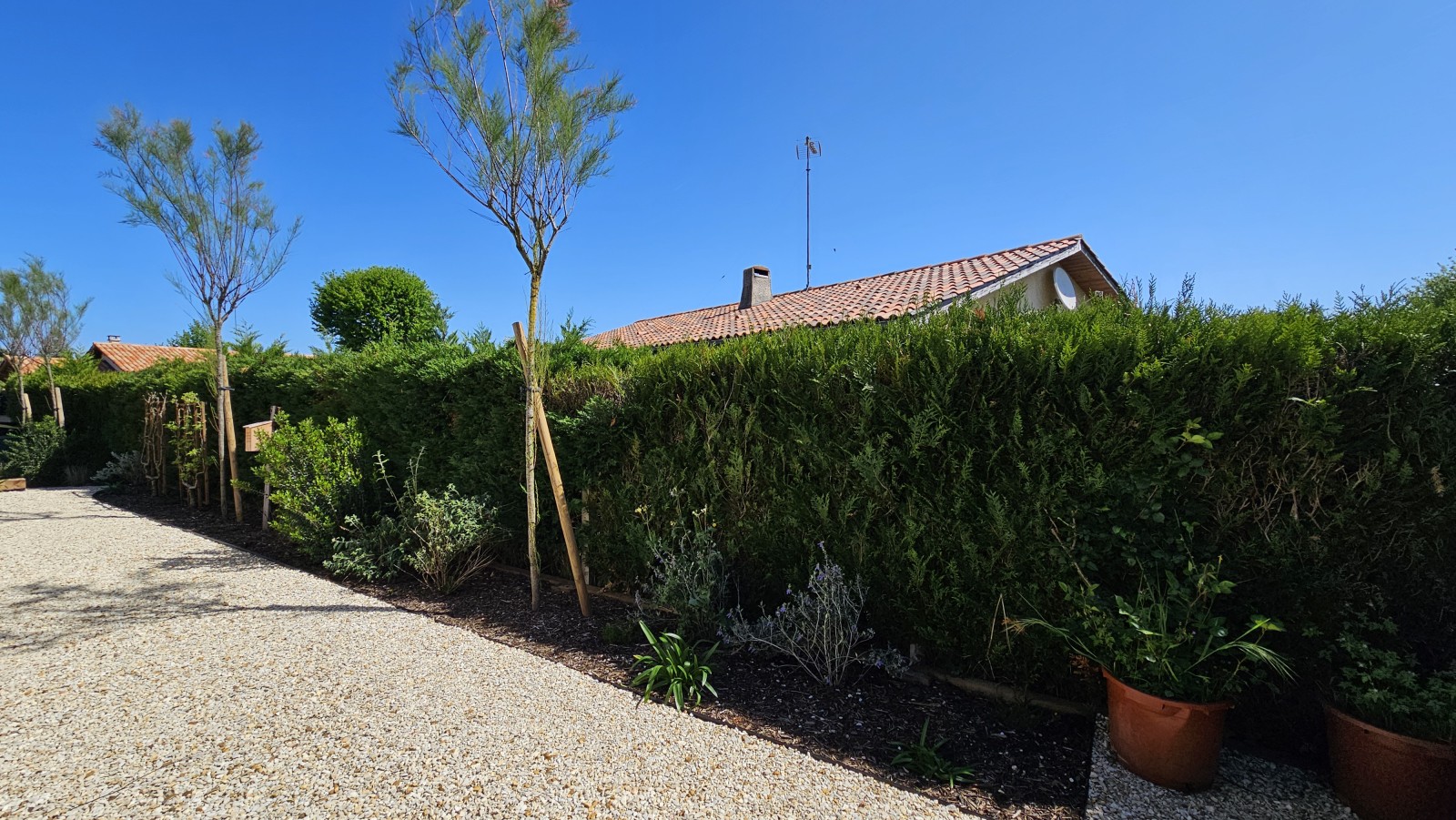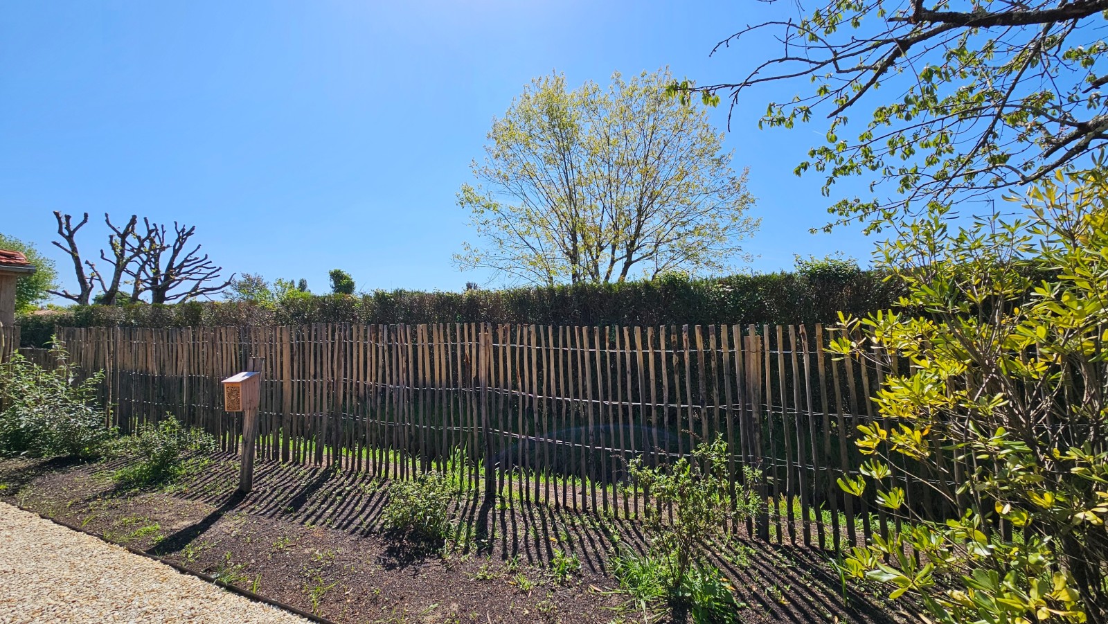 Pour délimiter le terrain et protéger de la craste situé en mitoyenneté, une clôture en ganivelle a été installé avec un portillon assorti permettant un accès pour l’entretien.